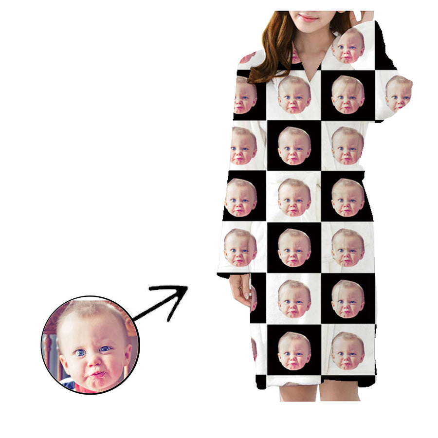 Benutzerdefinierte Pyjama-Robe mit dem Gesicht Ihrer Liebsten, Haustiergesicht, Katzengesicht. Einzigartiges Geschenk für Weihnachten, Geburtstag, Valentinstag, Hochzeit, Muttertag, Vatertag oder Tierliebhaber.