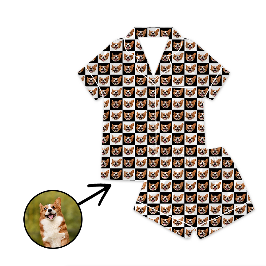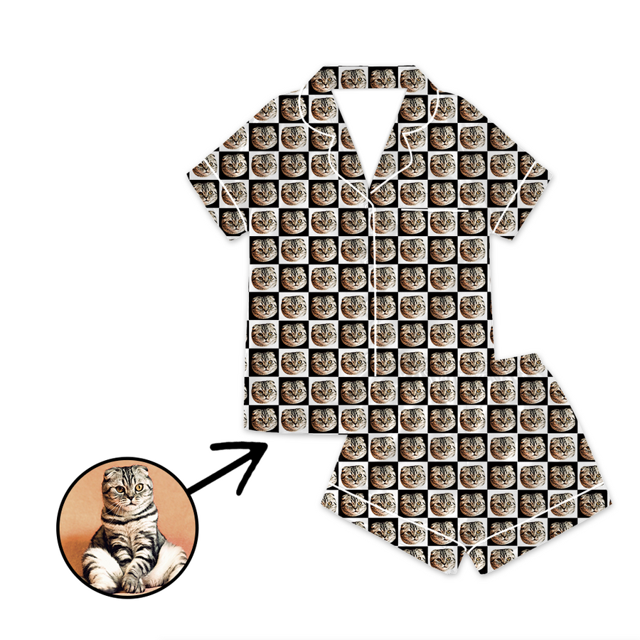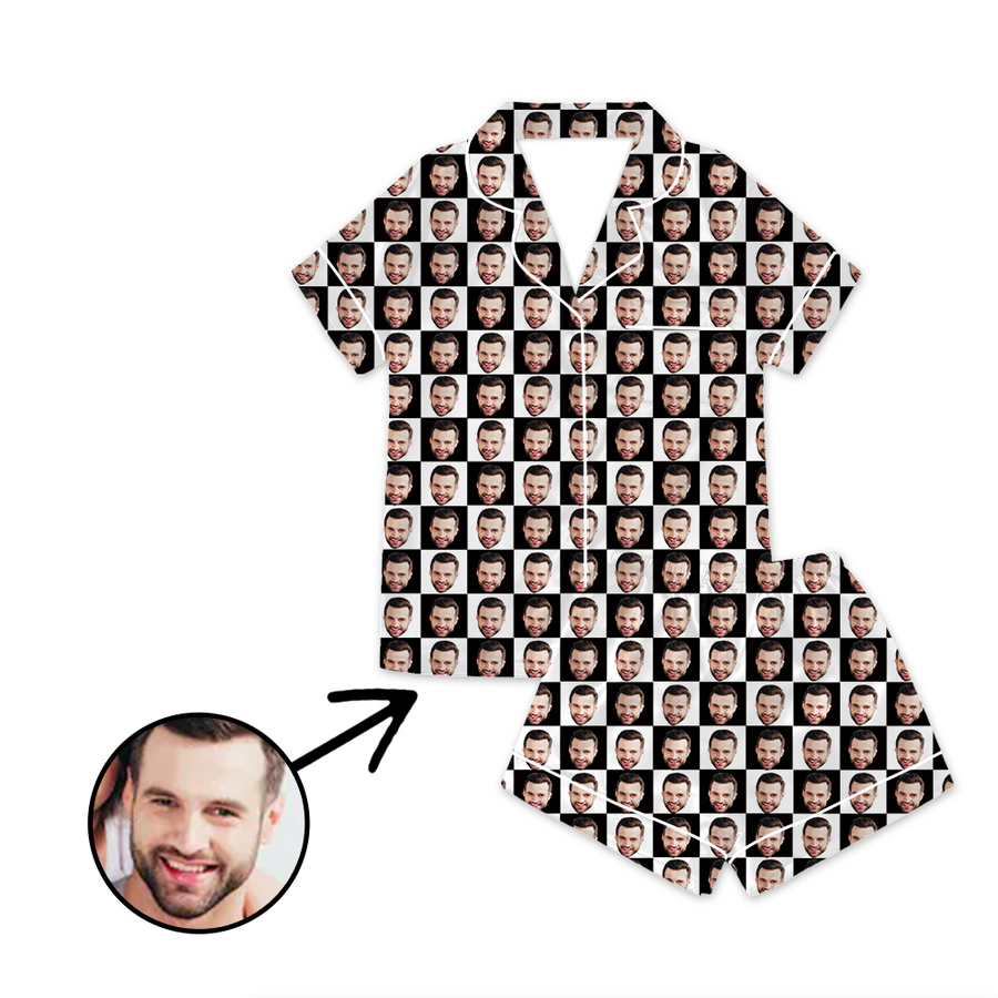 Kundenspezifischer Foto Satin Pyjama Schwarzweiss