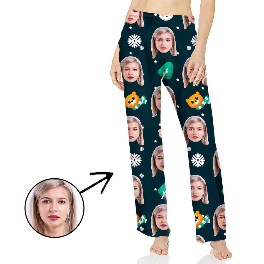 Personalisiert Foto Pyjamas Hose für Frauen Schneeflocke und schöner Bär
