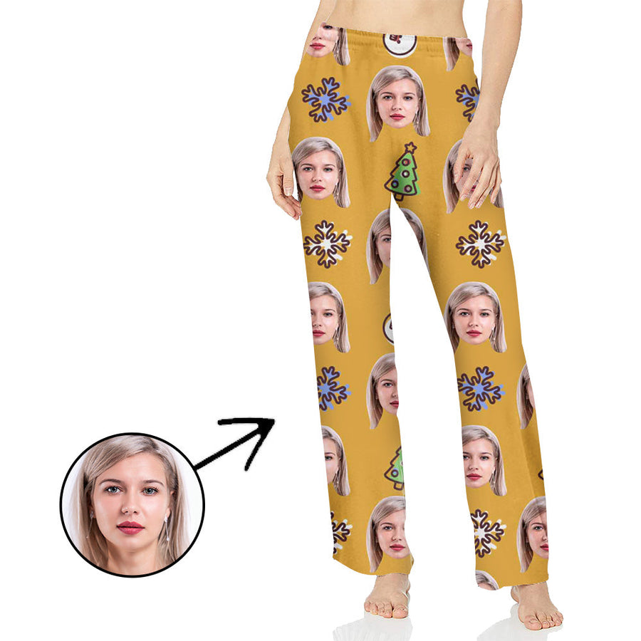 Personalisiert Foto Pyjamas Hose für Frauen Schneeflocke mit Weihnachtsbaum